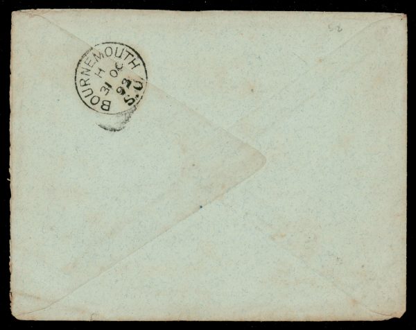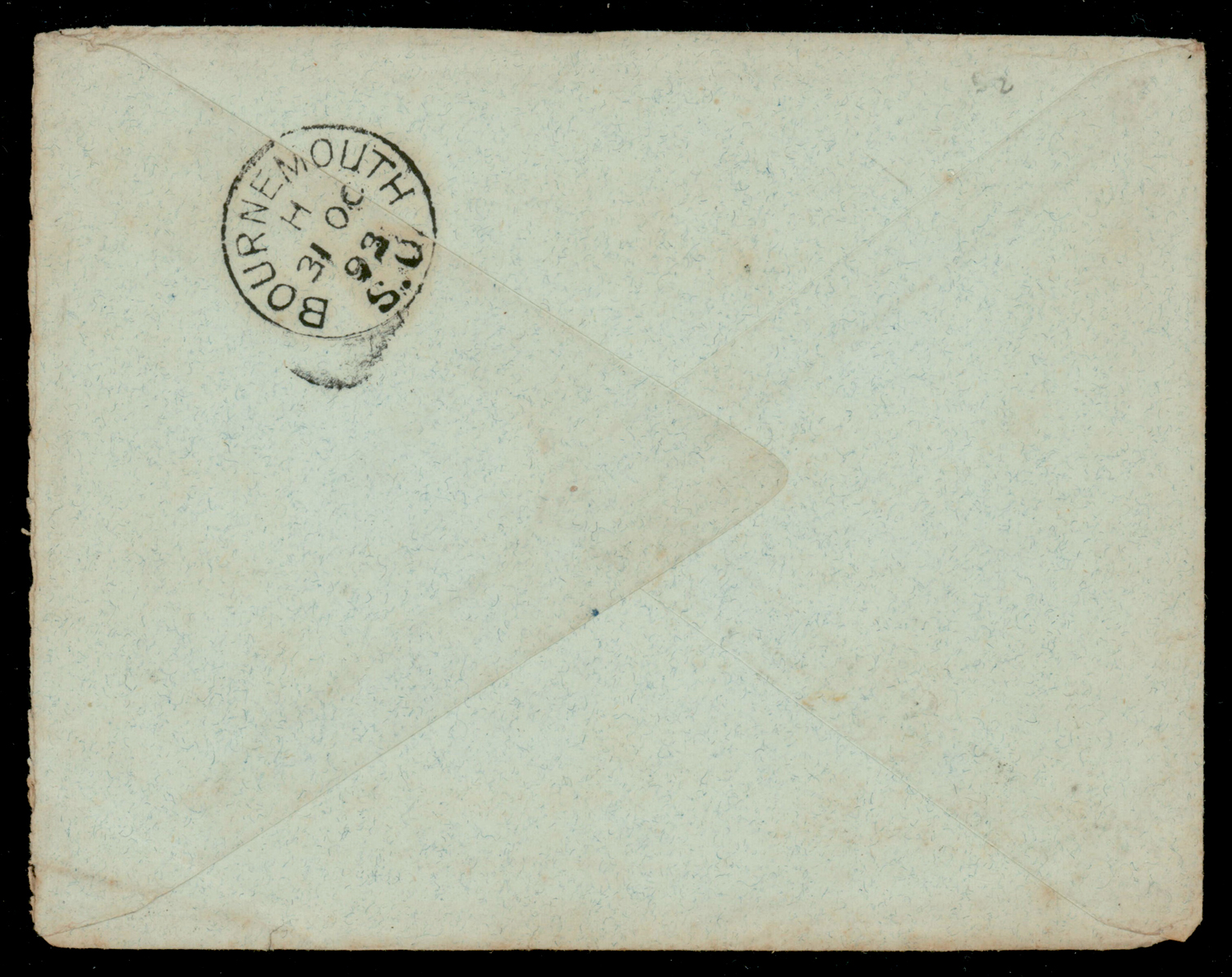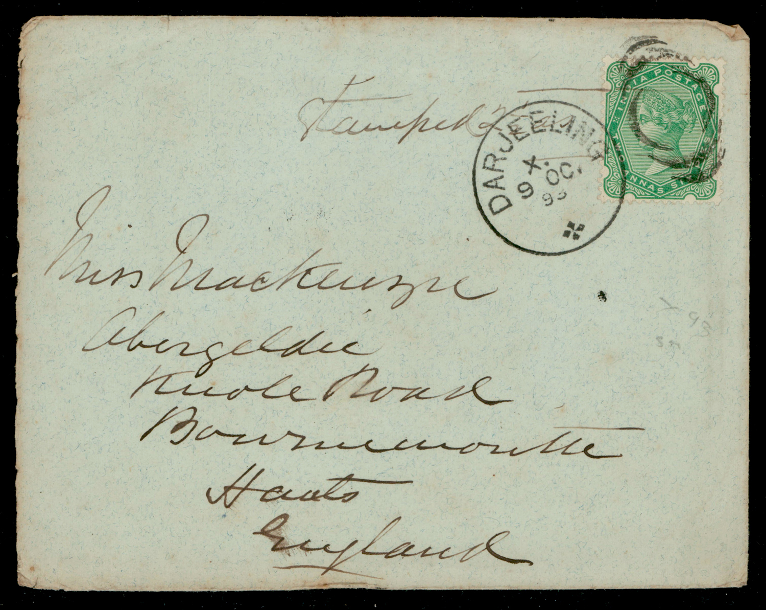 Early India Cancellations: Cooper type 27 “DARJEELING/(Crescent)” duplex on 1893 2a6p cover to UK