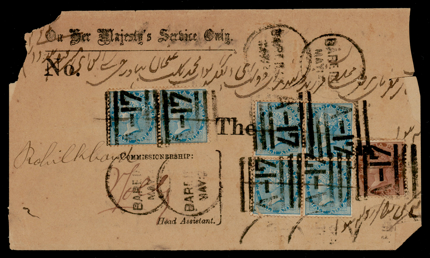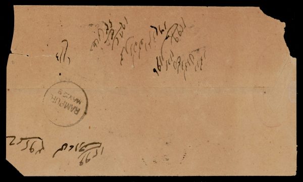Early India Cancellations: Cooper type 32 “BAREILLY/A-17” duplex on Official cover (reduced) to Rampur
