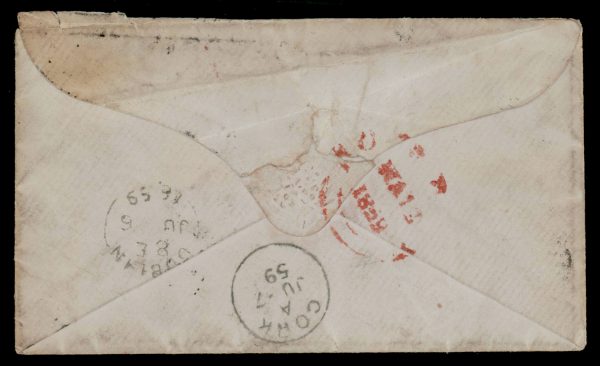Early India Cancellations: Cooper type 4 on 1859 6a cover from Bombay to Ireland via Marseilles