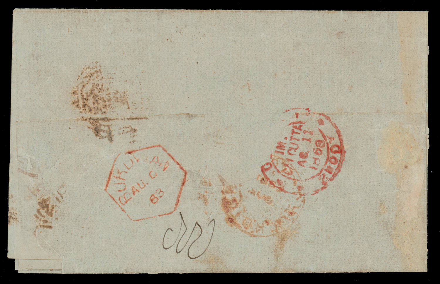 Early India Cancellations: Cooper type 7 “B/245” on 1868 fl to Calcutta with BURDWAN hexagon