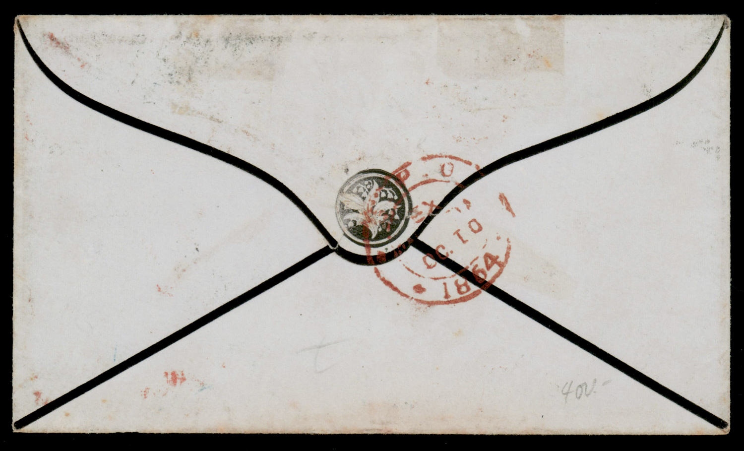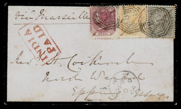 Early India Cancellations: Cooper type 7 on 1864 6a8p mourning cover from Calcutta to UK via Marseilles