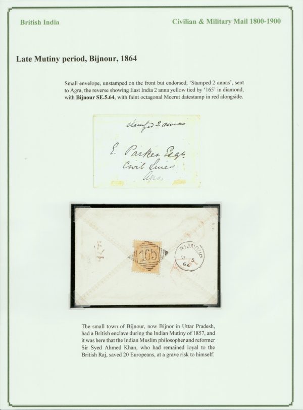 Early India Cancellations: Cooper type 8 “165” on 1864 Ladies cover from Bijnour to Agra with MEERUT hexagonal transit
