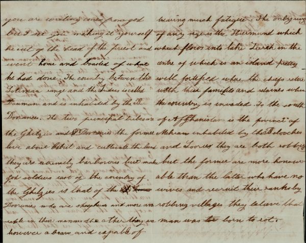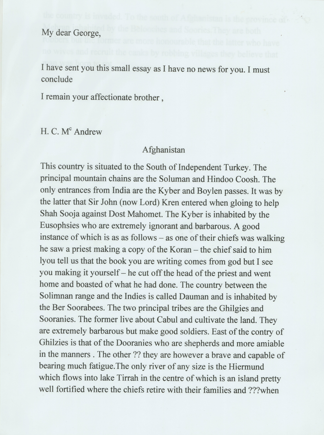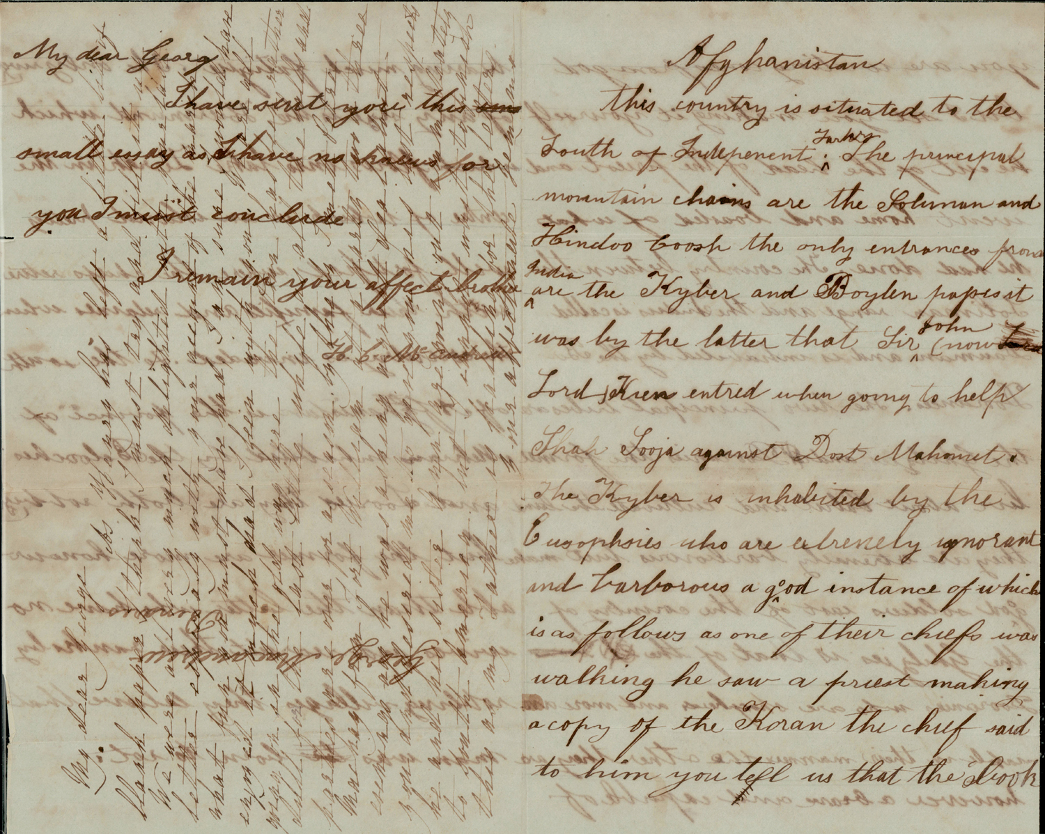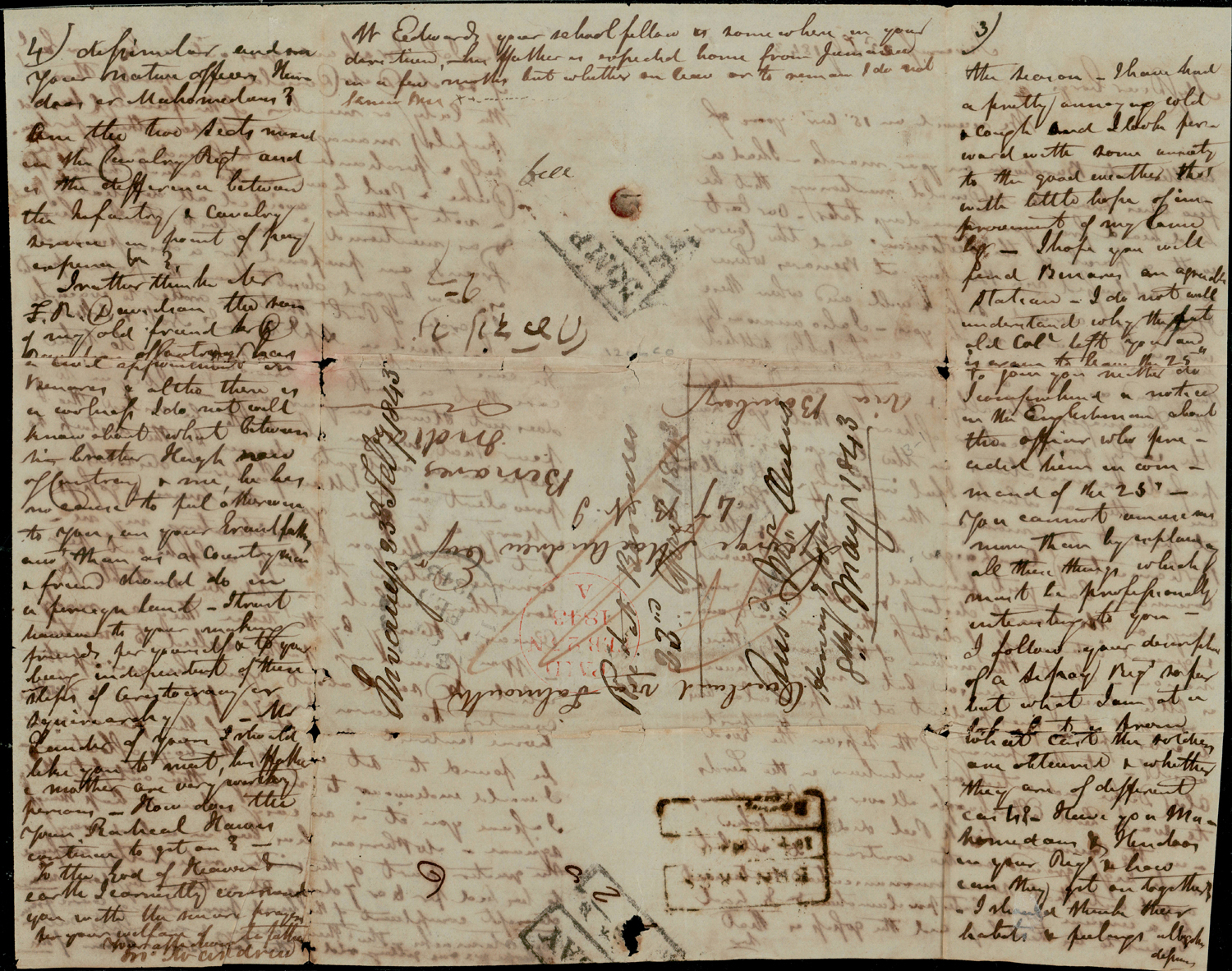 First Afghan War: BENARES Bearing Giles 8 on 1843 (23 Feb) incoming folded letter from Inverness, endorsed “Overland via Falmouth” to C MacAndrew 47th B.N.I. (Bengal Native Infantry). Interesting contents detailing history of Afghanistan. Transcript of letter included.