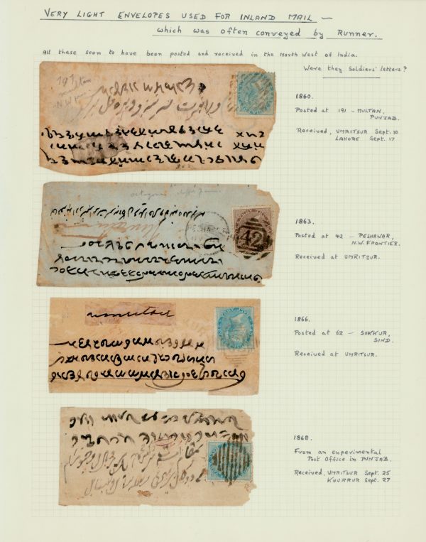 India 1800s native covers from North West Provinces, each carried by Dak runners to Umritsur, written up on a page