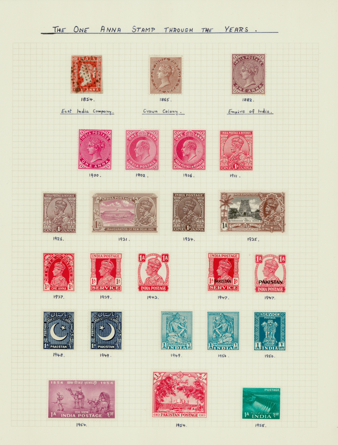 India 1854-1955 collection of 1a stamps through the years, mostly mint