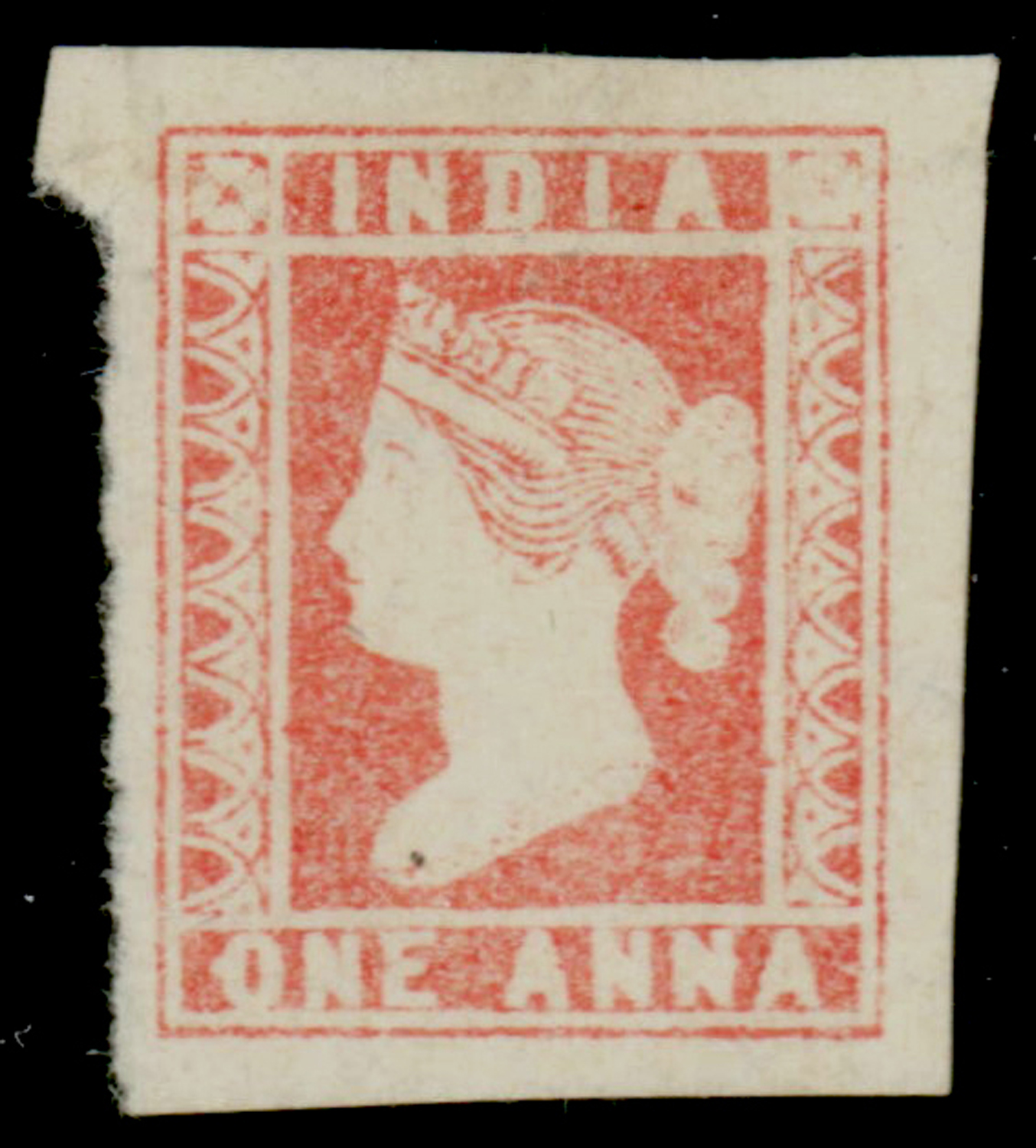 India 1854 QV 1a dull red, imperf, die II, wide margins, unused without gum as issued. SG 14 £300