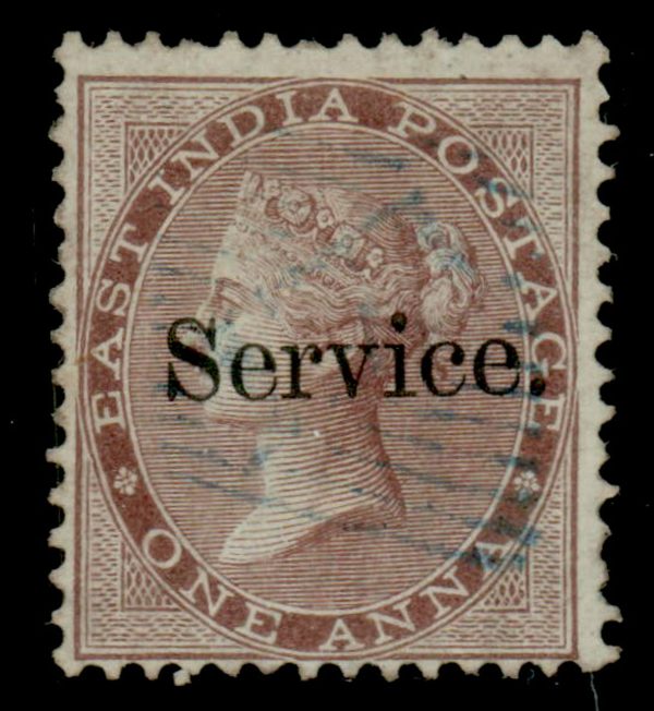India 1866-72 QV 1a deep brown, ovpt. Small Service on unwatermarked paper, fine used. SG O4 £325