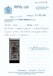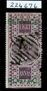 India 1866 8a Foreign bill ovpt SERVICE/POSTAGE in green, cancelled by scarce Cooper type 12, minor surface abrasions / crease which is common to this issue. SG O18 £13,000. 2016 RPSL certificate