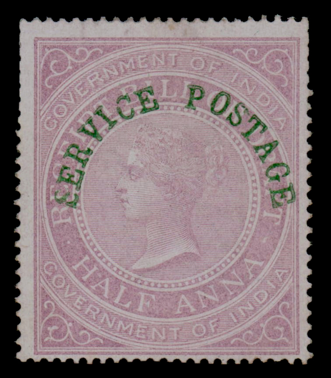 India 1866 QV ½a fiscal stamp overprinted SERVICE/POSTAGE in semi circle, mint. SG O19 £1,000