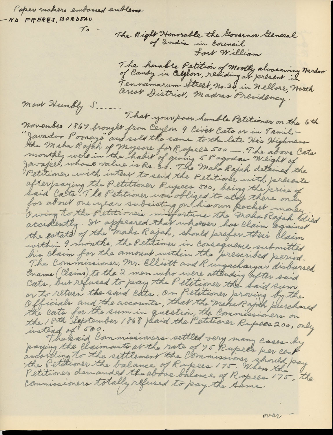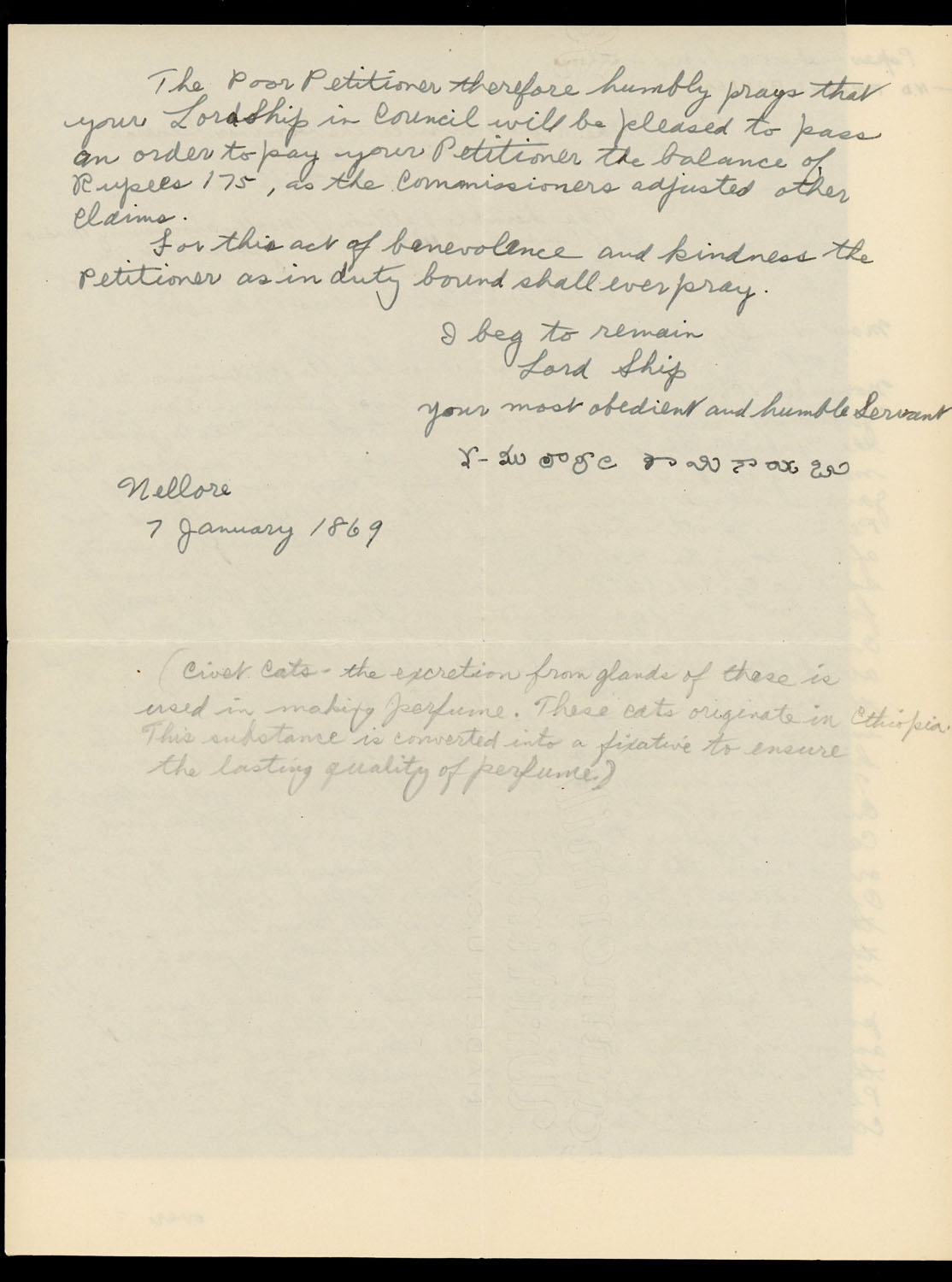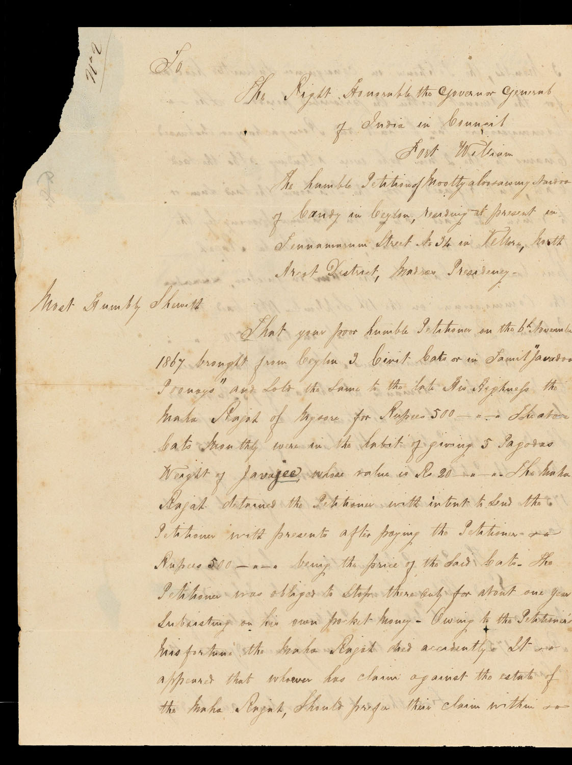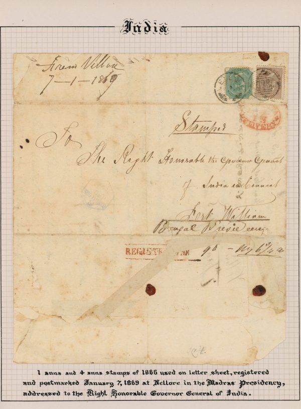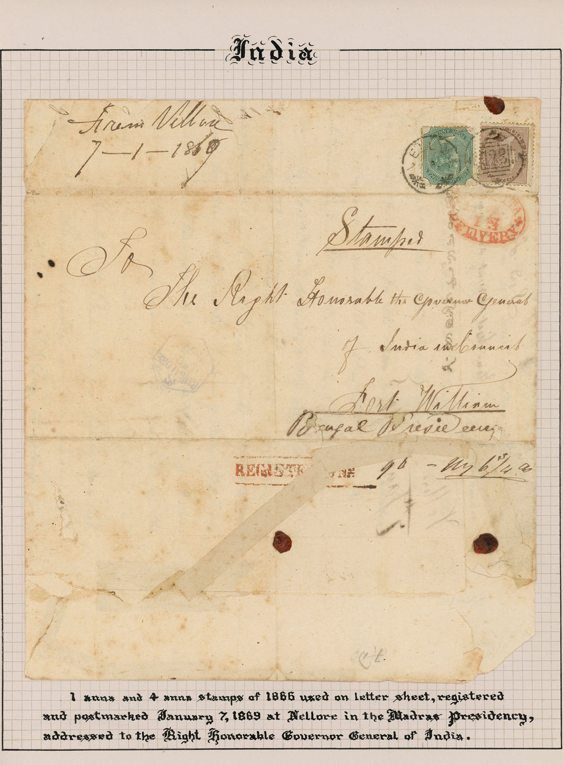 India 1869 (Jan 7) registered entire from Nellore addressed to The Right Honorable Governor General of India in Council, Fort William, Bengal Presidency.
