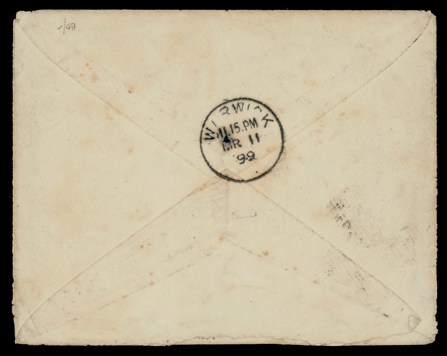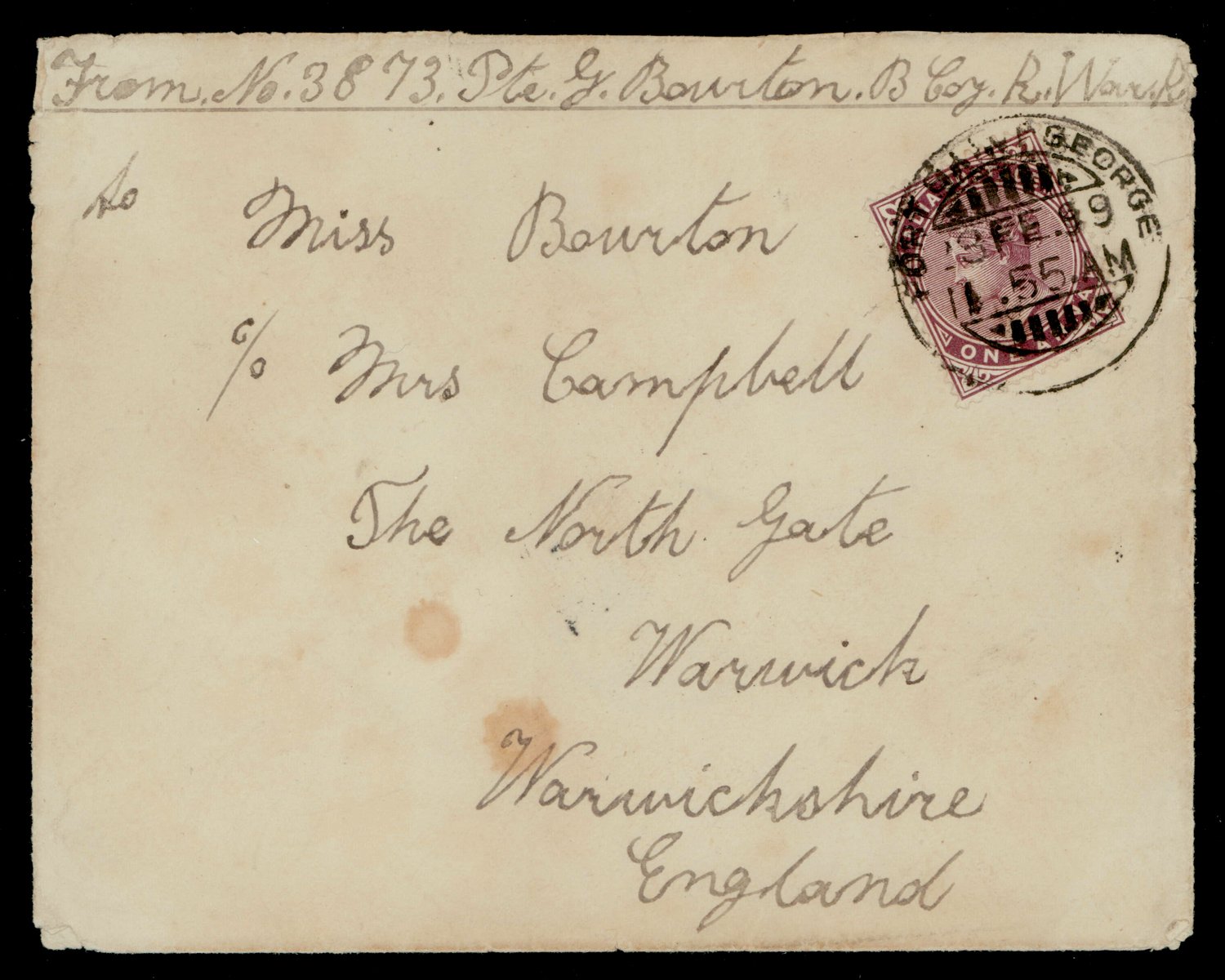 India 1899 QV 1a on Soldier’s letter from Fort Saint George to UK