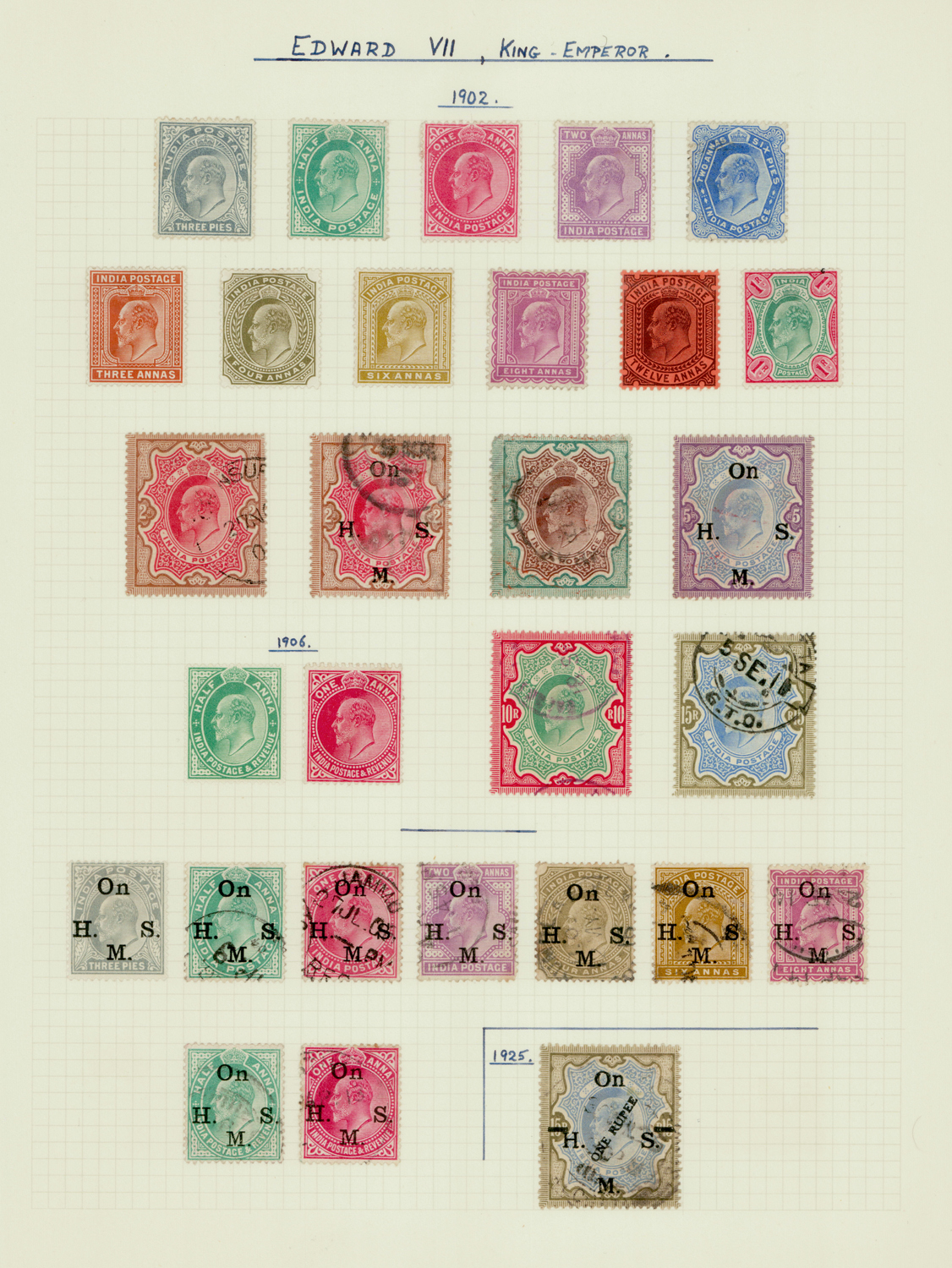 India 1902-11 Edward set to 1r mint, some high values used, including Officials.