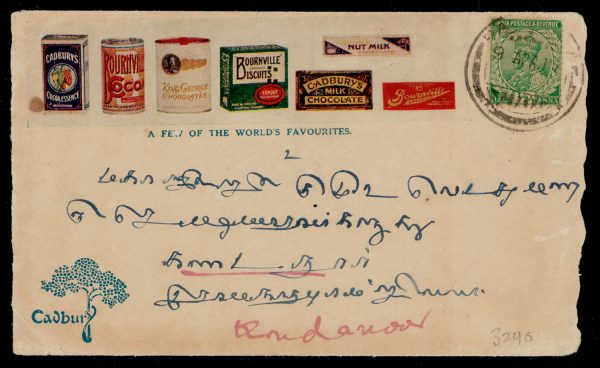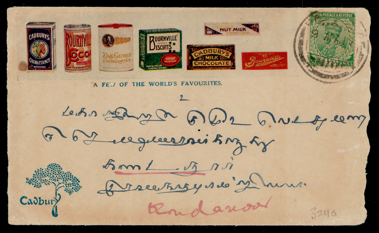 India 1917 GV Cadbury multicolor advertizing cover to Kondanoor