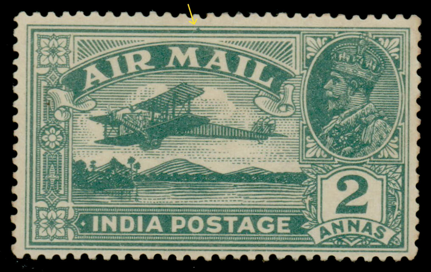 India 1929 GV 2a Airmail, variety: dot above “M” in frameline, mint. Dave type 38