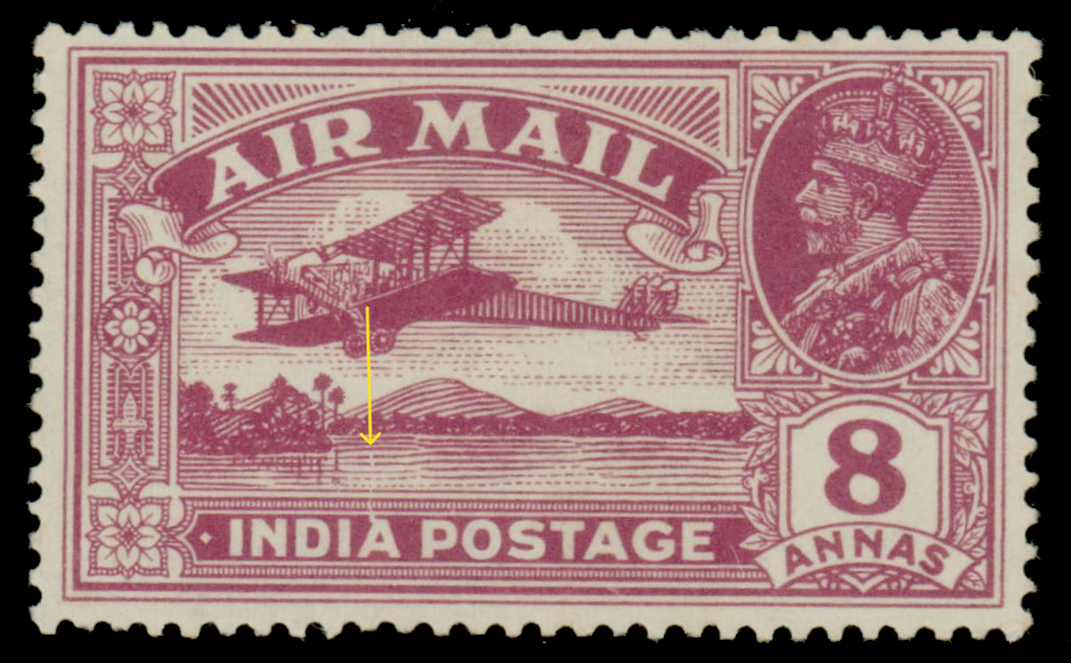 India 1929 GV 8a Airmail, variety: hairline from hill to “A” of INDIA, mint. Dave type 21