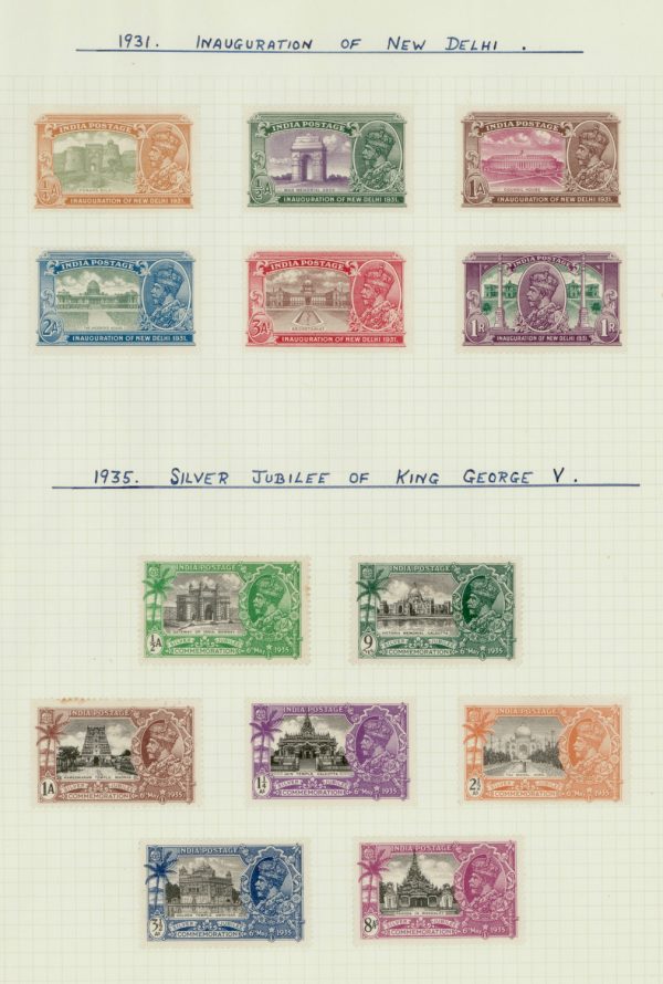 India 1931 GV Inauguration and 1935 Silver Jubilee complete sets on sheet, mint. SG 226/231, 240/246 £80