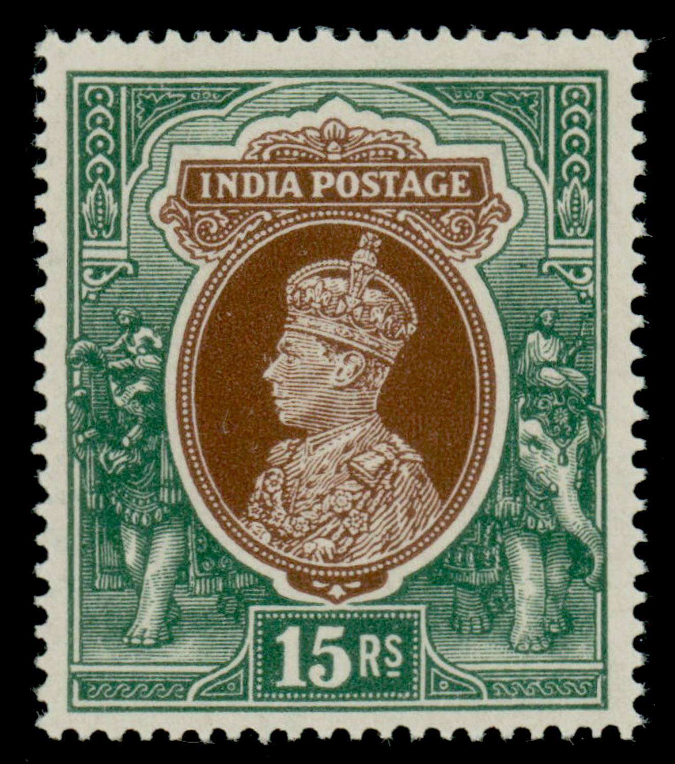 India 1937-40 GVI 15r, mint. SG 263 £180