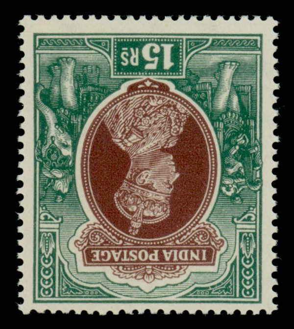 India 1937 GVI 15r brown and green, variety: watermark inverted. SG 263w £425