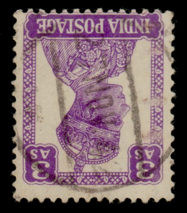 India 1941 GVI 3a bright violet, variety: watermark inverted. SG 271aw £55