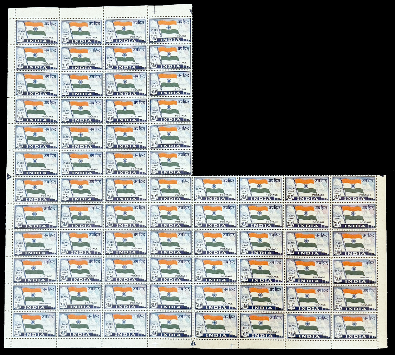 India 1947 Jai Hind 3½a flag pane/72, MNH. SG 302 £288