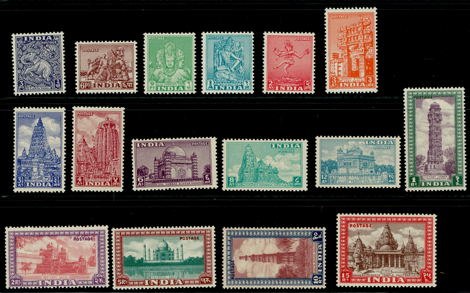 India 1949-52 Archaeological 16-value complete set, MNH. SG 309/324 £325