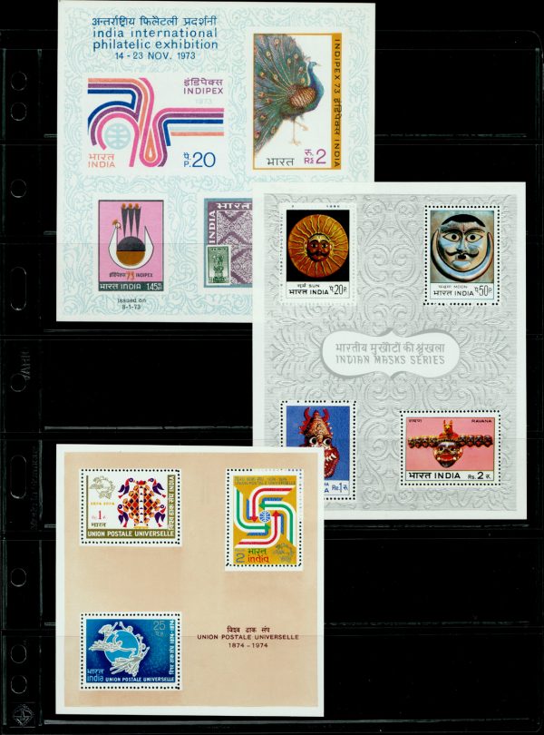 India 1973-74 First three miniature sheets, MNH. SG MS704, MS 711, MS 743 £44