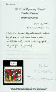 India 1974 UNICEF 25p Indian Dancers, variety: black (name & value) omitted, mint, with normal for comparision. SG 749a. 2006 BPA certificate