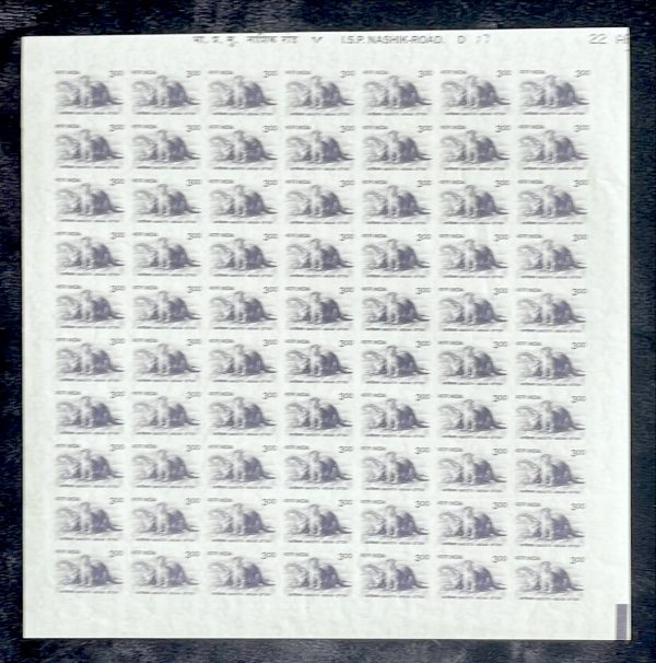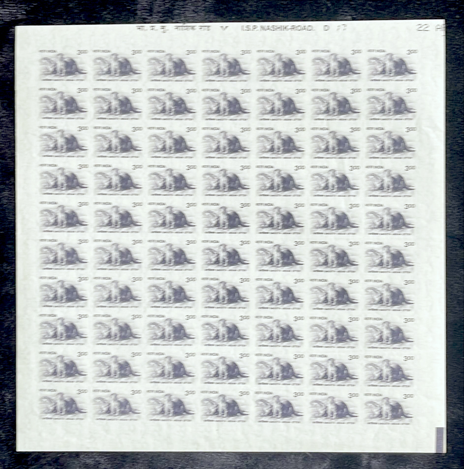 India 2000-2002 Wildlife Smooth Indian Otter 3r complete sheet/70, variety: imperforate, MNH. SG 1926var