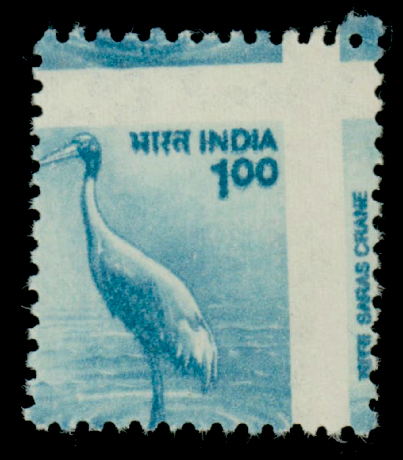 India 2000 Crane 1r blue, variety: perforation shifted drastically, MNH. SG 1925