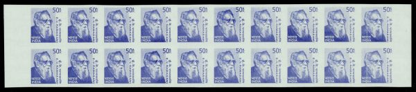 India 2008-09 Builders of Modern India, 10th series, E.V. Ramasami 50p, variety: imperforate pane/20, MNH. SG 2531var