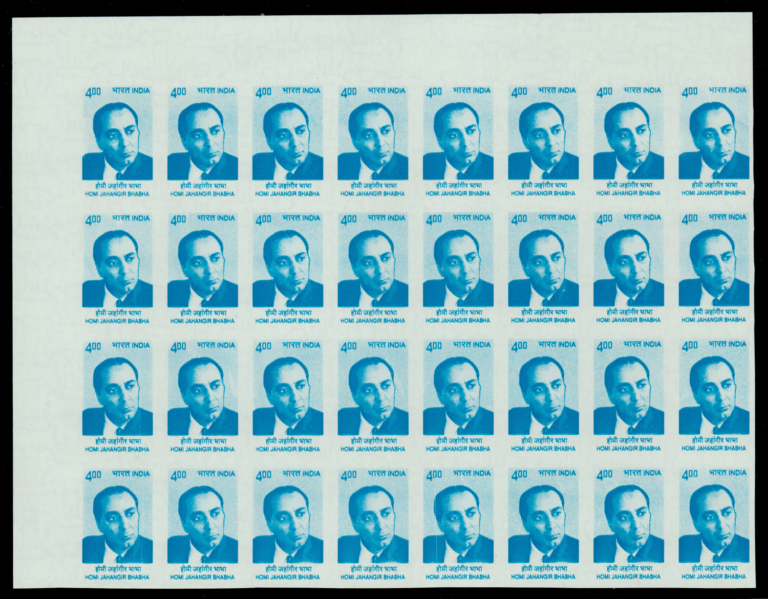 India 2008-09 Builders of Modern India, 10th series, Homi Jahangir Bhabha 4r, variety: imperforate blk/32, MNH. SG 2535var
