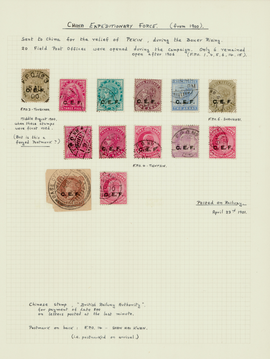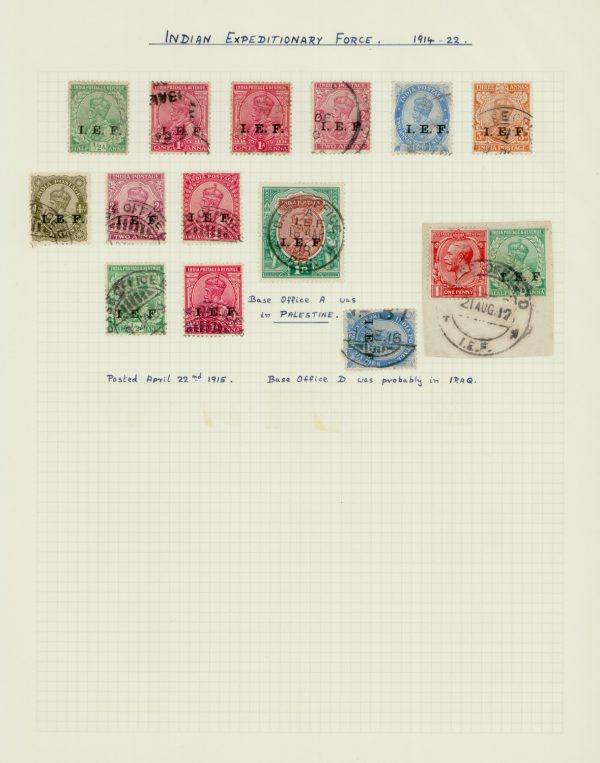 India C.E.F. and I.E.F. group on 2 written up pages, used. SG C1/E13