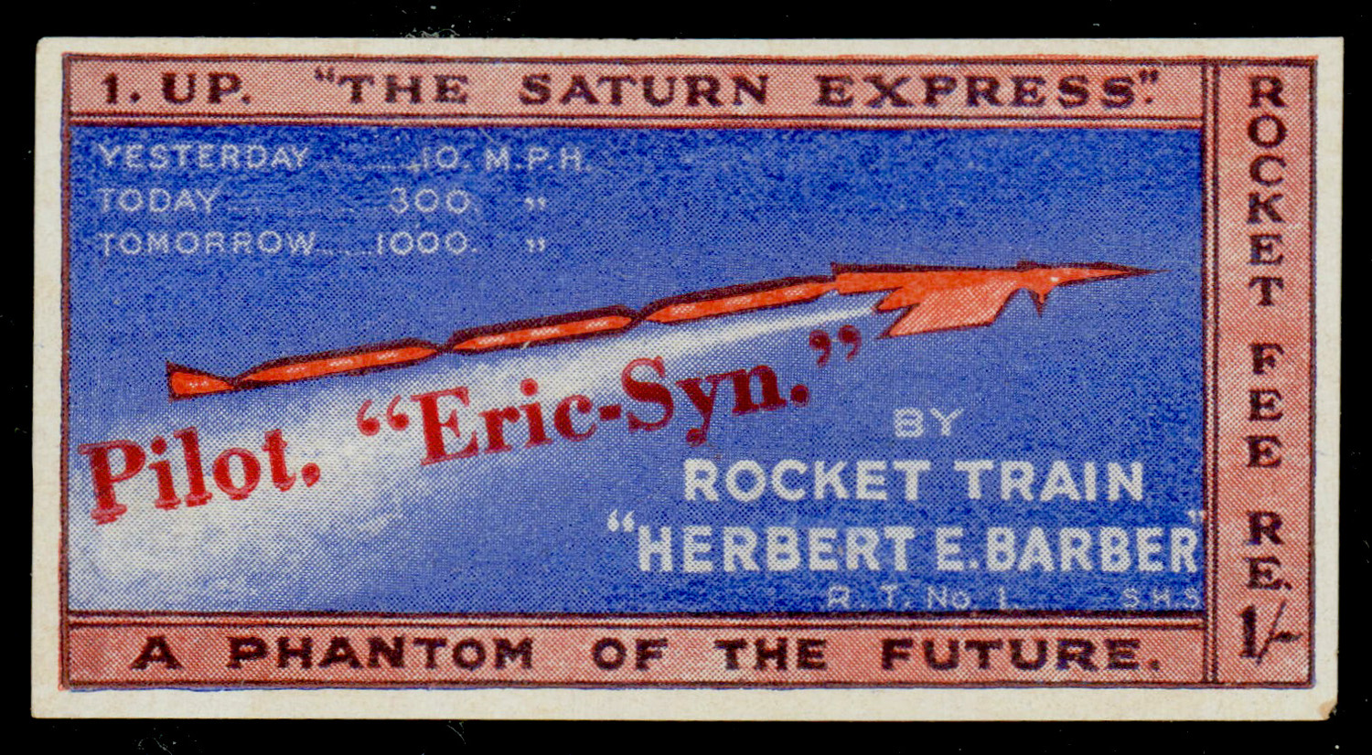 India Rocket Mail: THE SATURN EXPRESS Rocket label by Pilot “Eric-Syn”, signed Stephen Smith on reverse