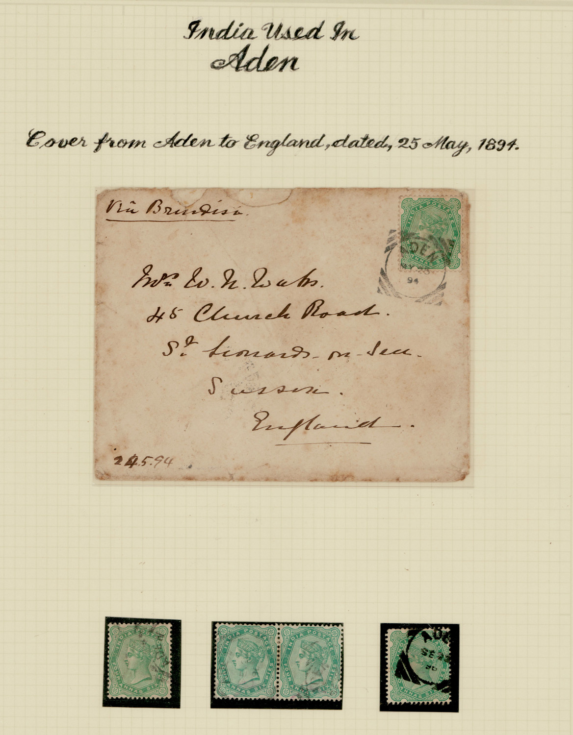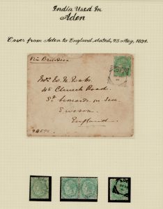 India used in Aden: 1894 cover to UK tied by Aden squared circle and few stamps with various Aden cancels