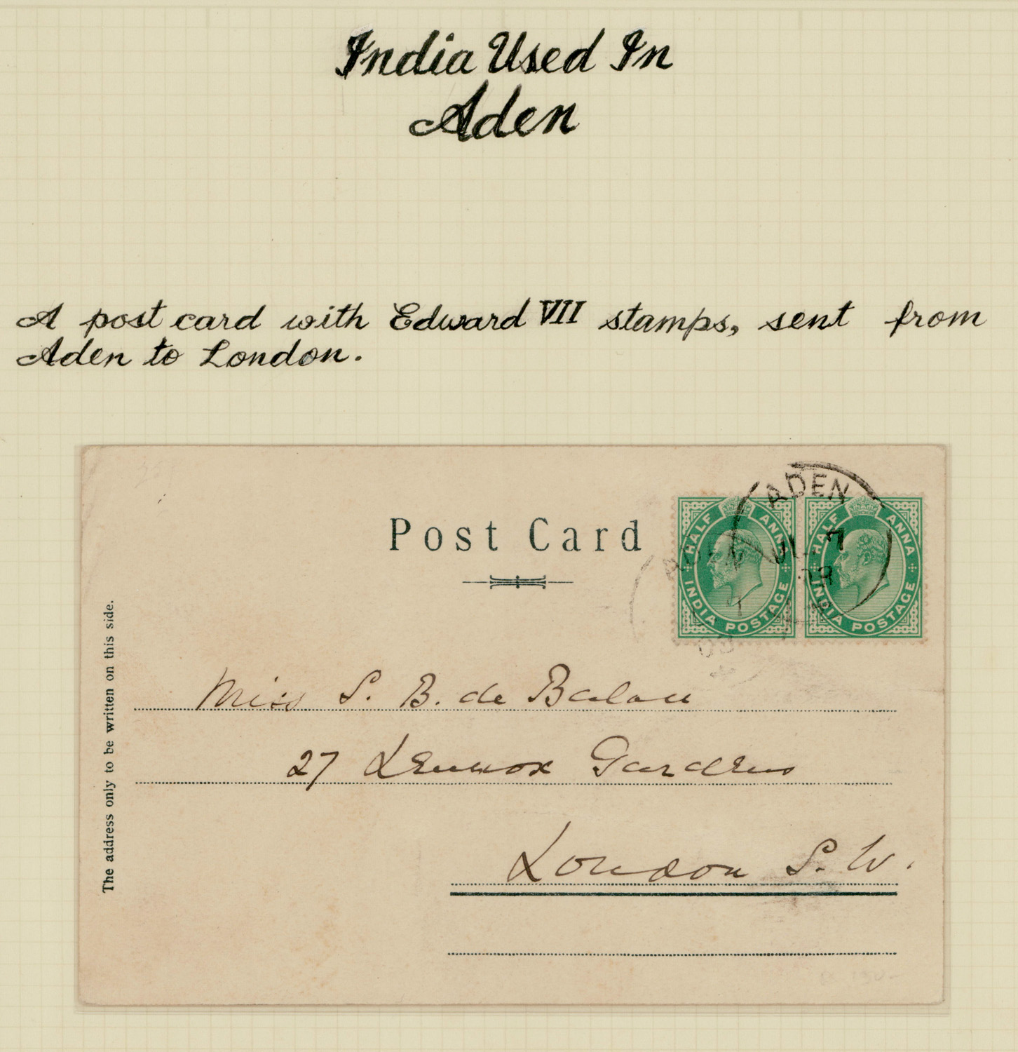 India used in Aden: 1908 picture postcard to UK