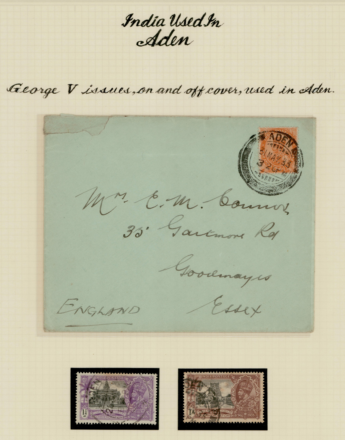 India used in Aden: 1933 GV cover to UK with Aden killer cds and Silver Jubilee stamps with Aden cancels