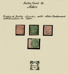 India used in Aden: ADEN CANTONMENT cancels on various QV stamps (4)