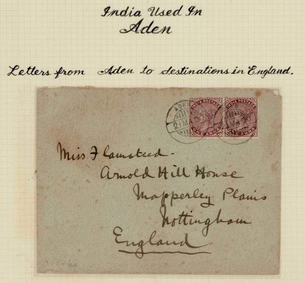 India used in Aden: ADEN grilled circle cancel on 1900 cover to UK