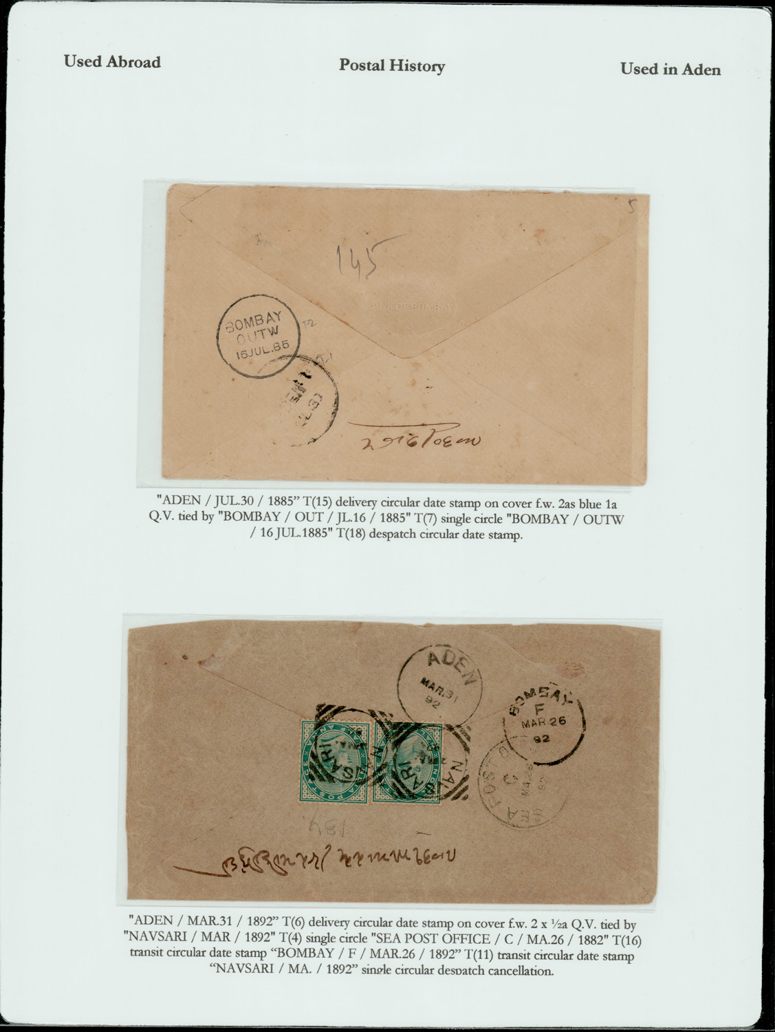 India used in Aden: ADEN single circle cancels on two incoming covers (2)