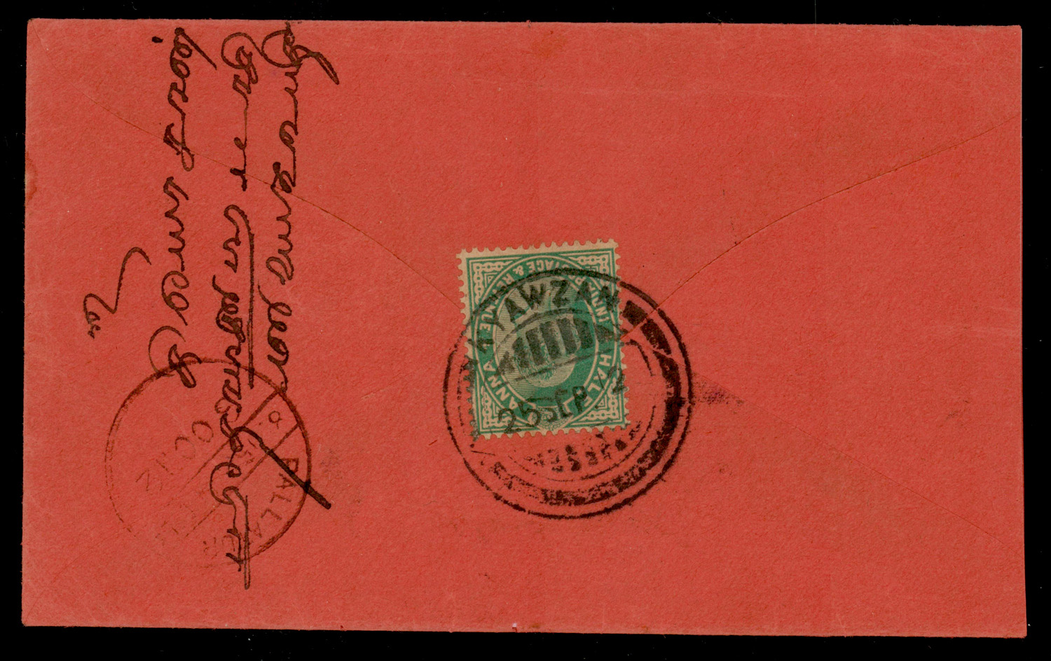 India used in Burma: 1912 cover from KYAWZAN to Pallatur
