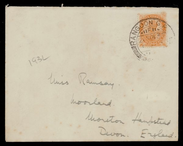 India used in Burma: RANGOON G.P.O. killer cds on 1932 cover to UK