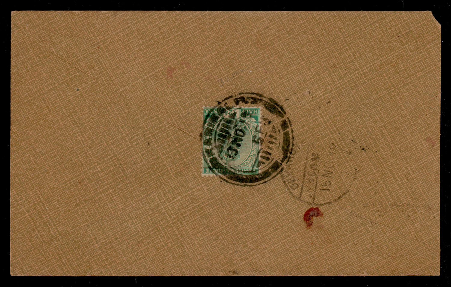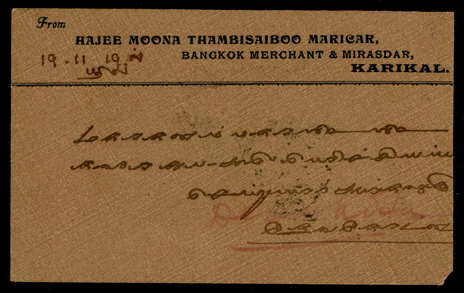 India used in French India: GV ½a tied by KARIKAL killer cds on 1916 cover to Devakota