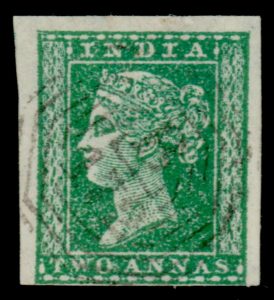 India used in Straits Settlements: B172 Penang cancel on 1854 2a green imperf