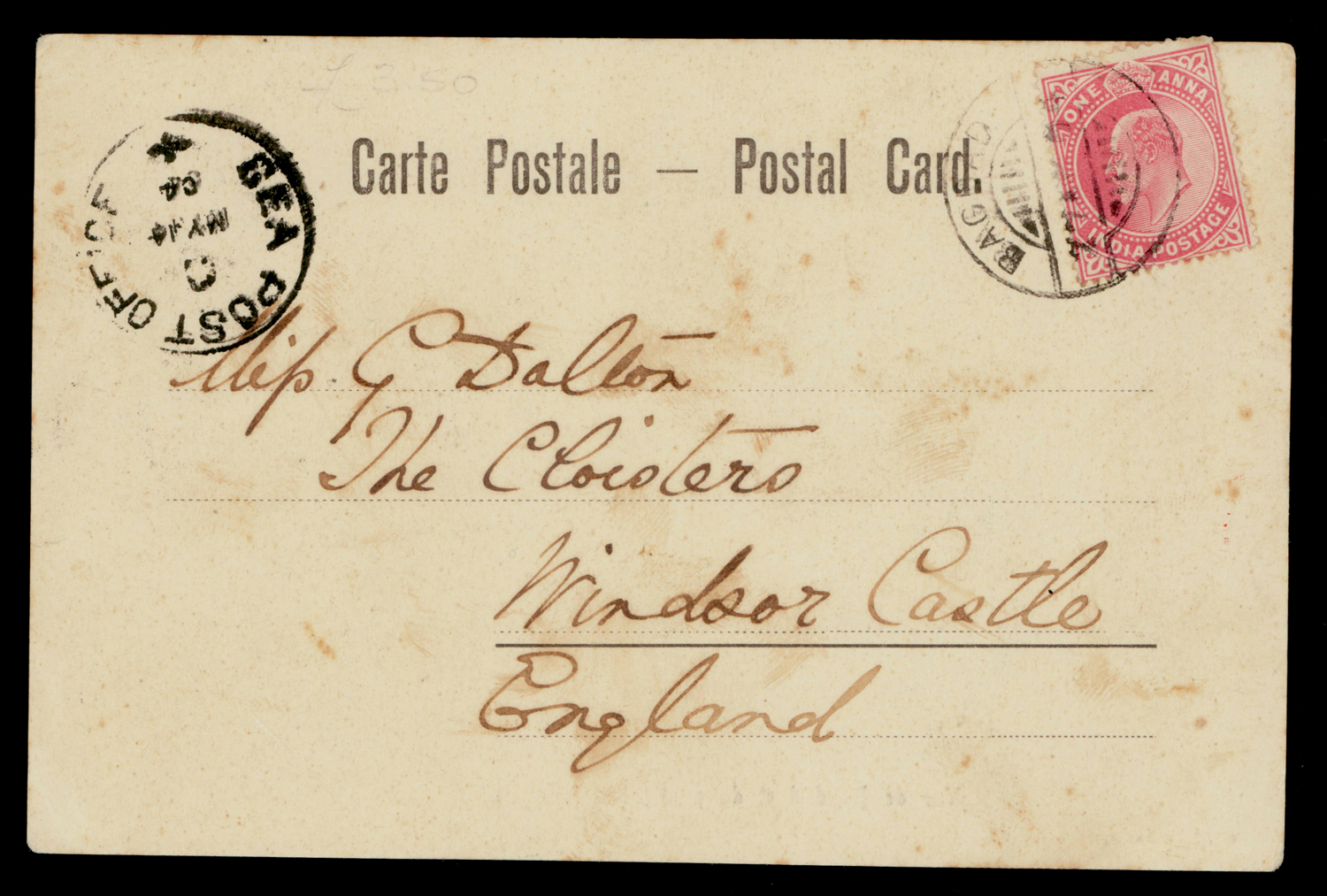 India used in the Persian Gulf: BAGDAD grilled circle cancel on 1904 picture postcard f.w. Edward 1a to UK